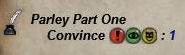 Bravo vous avez gagné votre premier parley. Pour faire avancer le tutorial, vous devez en faire un second afin de valider la quête. Ensuite l'instructeur va vous reproposer une quête, qui au travers de deux nouveaux parleys qu'il va vous laisser encore gagner, lui permettra de continuer ses explications.