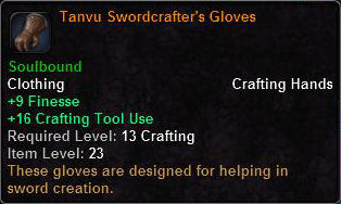 | Lvl 13 - Tanvu - Karenda Bluewine : The swordsmith's apprentice: craftsmanship |